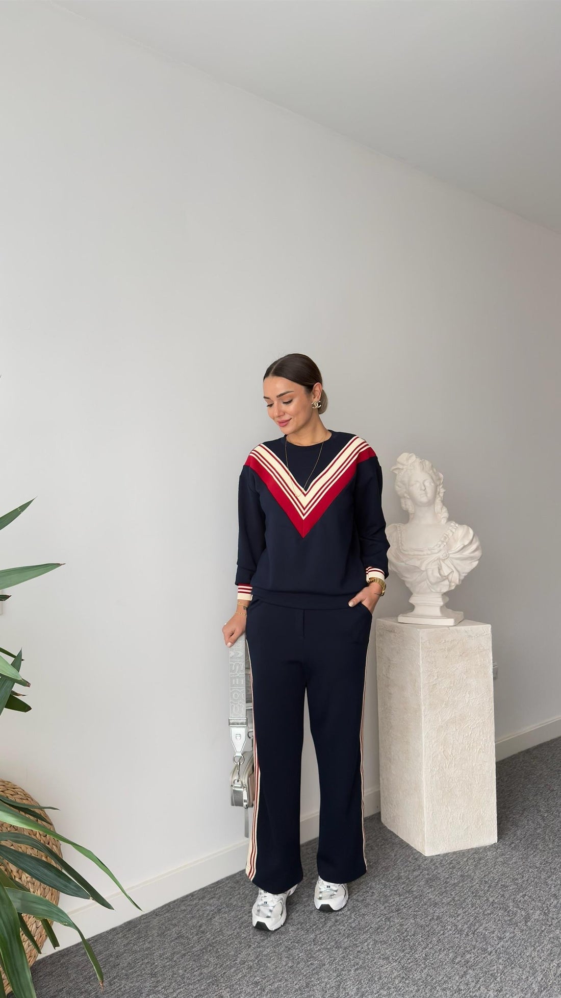 Denim Suit with Vest and Palazzo Pants Dark blue