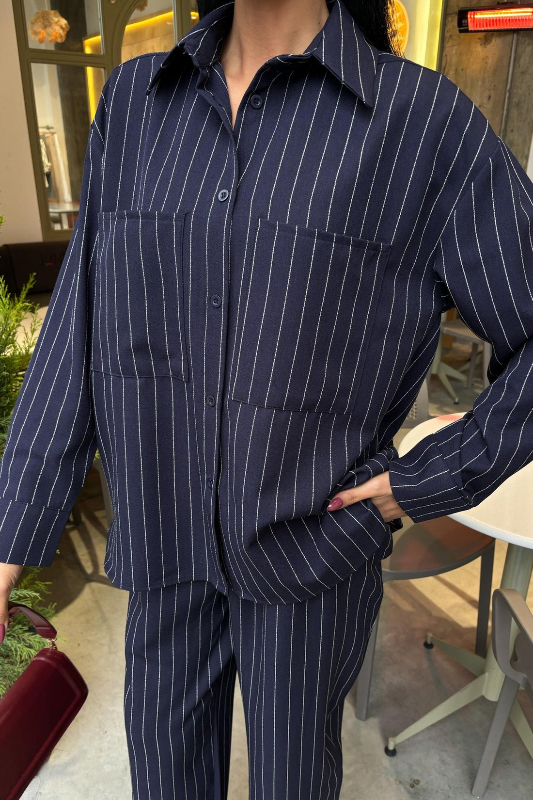 Vest Plazzo Trousers Striped Flame Poliviscon Suit Light Blue