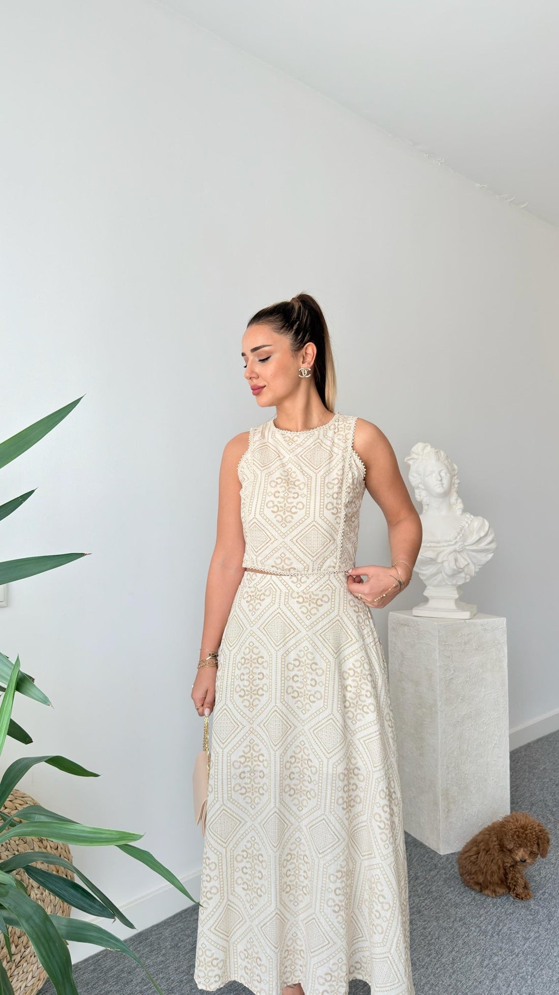 Ayrobin Suit with Tied Shirt and Slit Trousers Beige