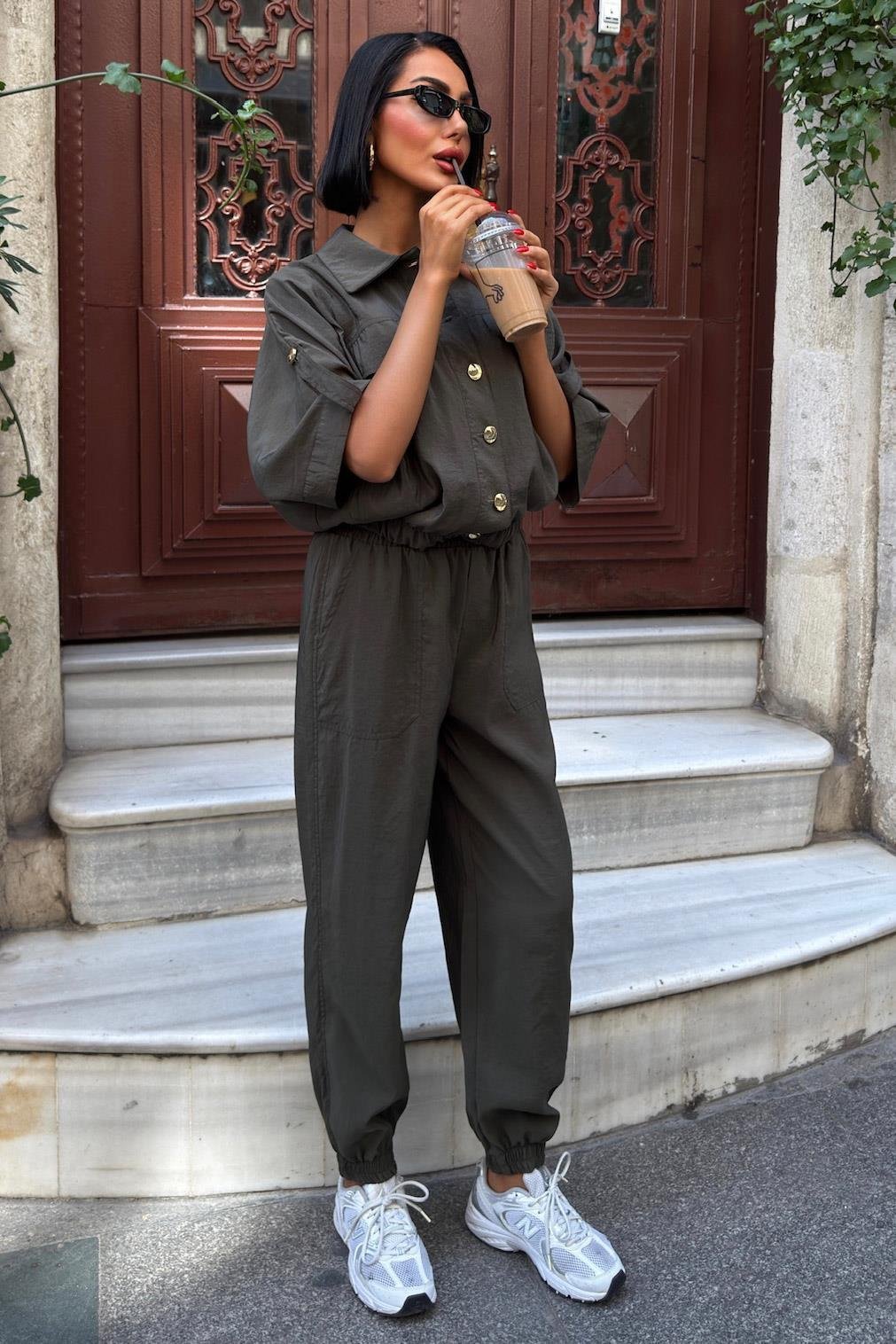 Gold Button Detailed Elastic Comfortable Suit Dark Grey