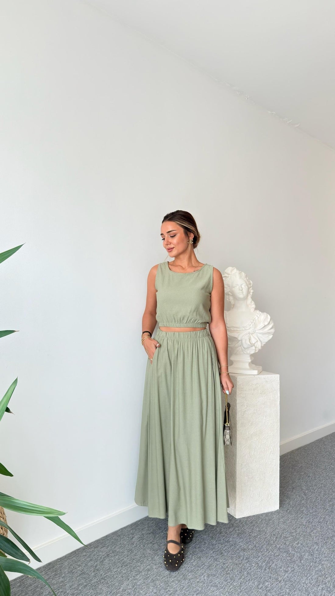 Brown Chima Modal Suit with Stripe Detailed Skirt