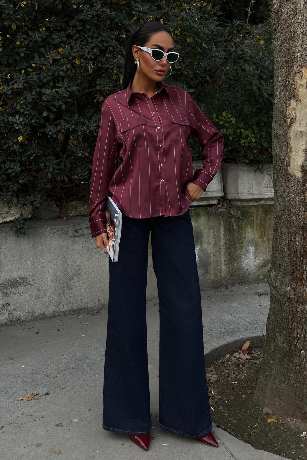 Poplin Burgundy Shirt with Eyelet and Piping Detail