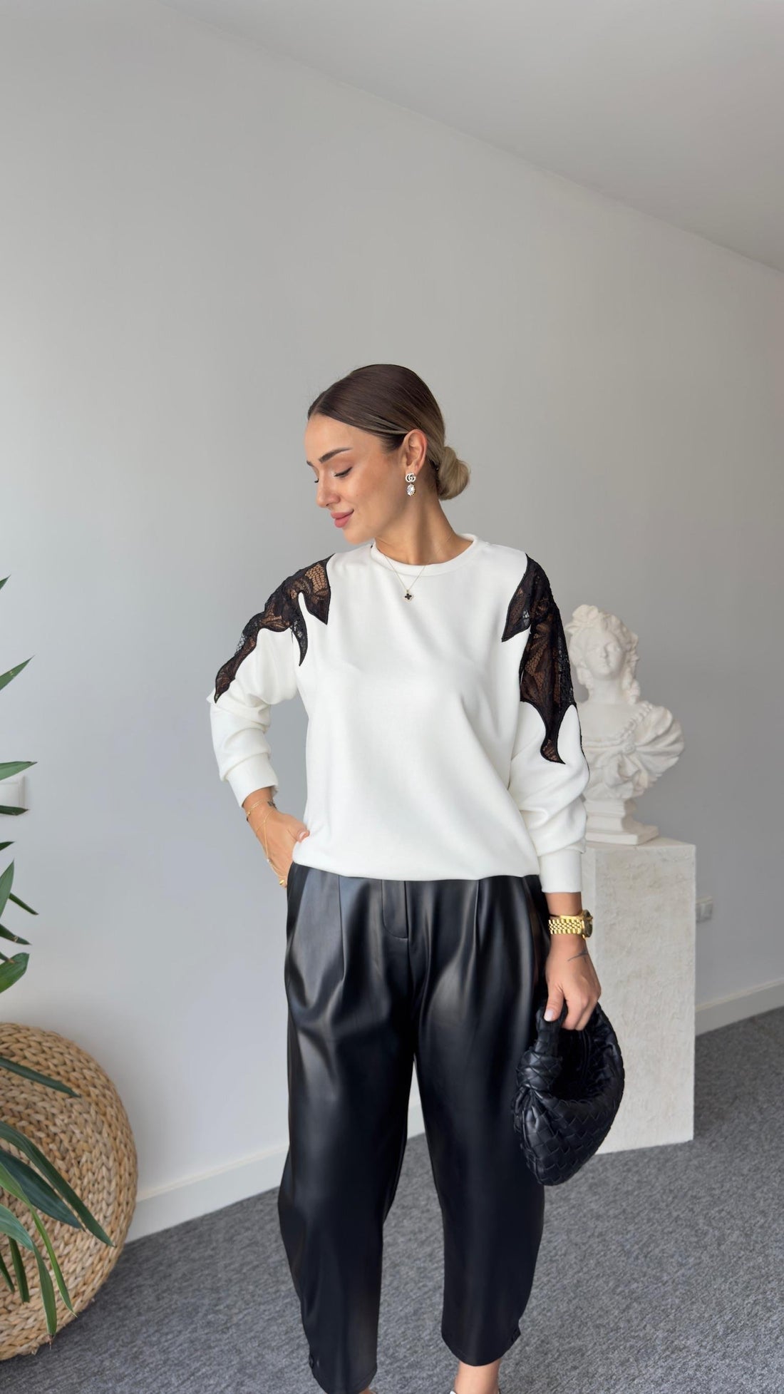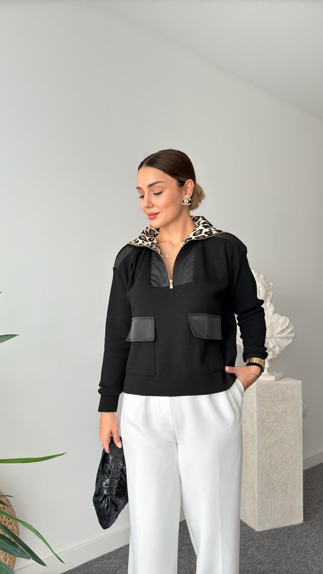 Beige Sweatshirt with Tiger Print Parachute Garnish