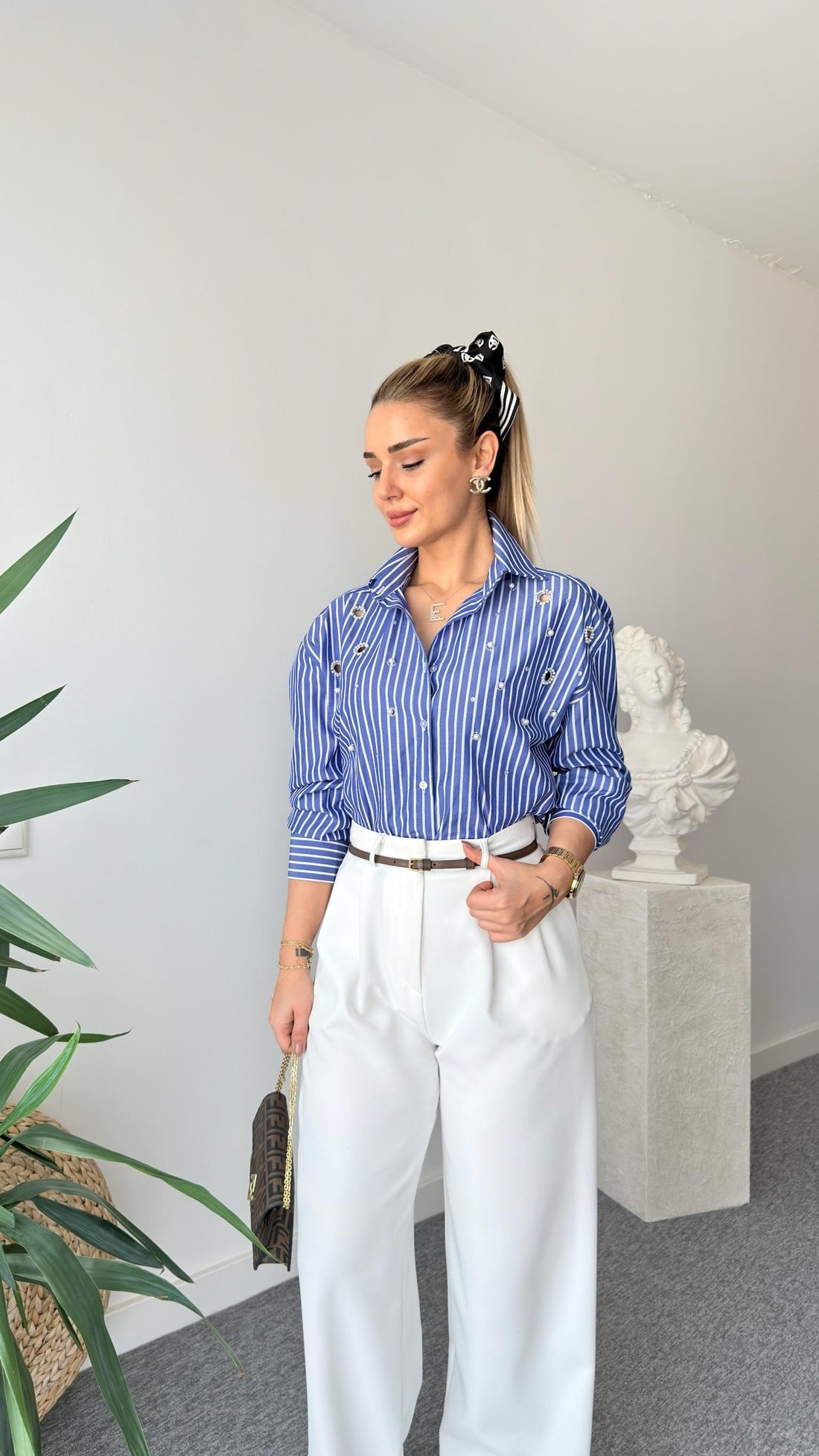 Peroni Pearl and Stone Embroidered Striped Shirt
