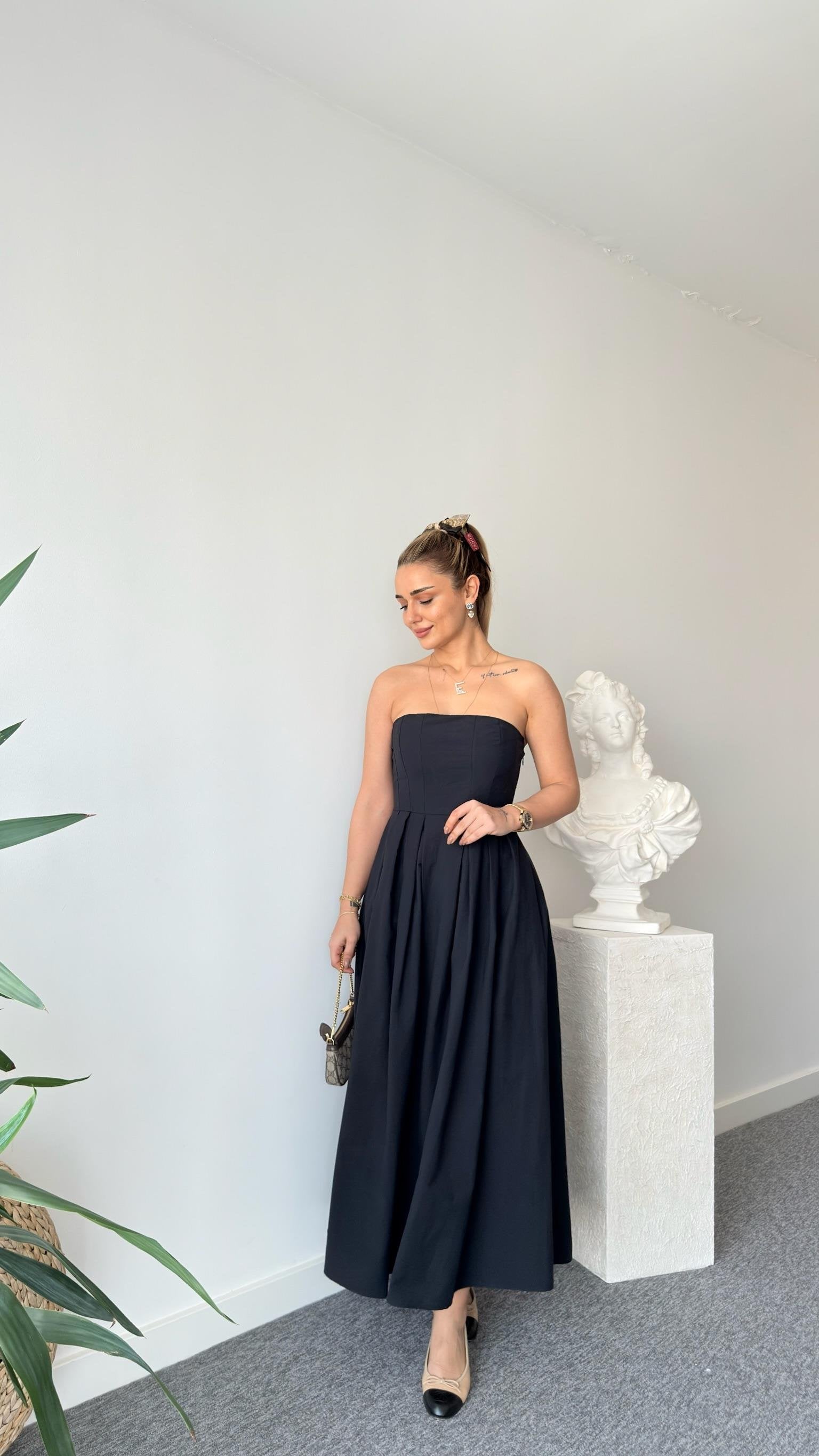 Black Strapless Parachute Dress