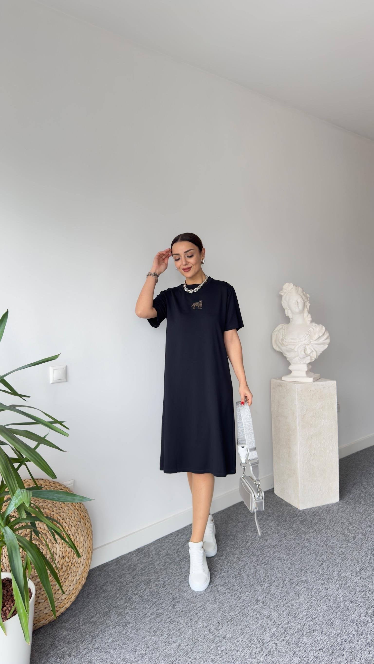 Black Tiger Embroidered Basic Dress