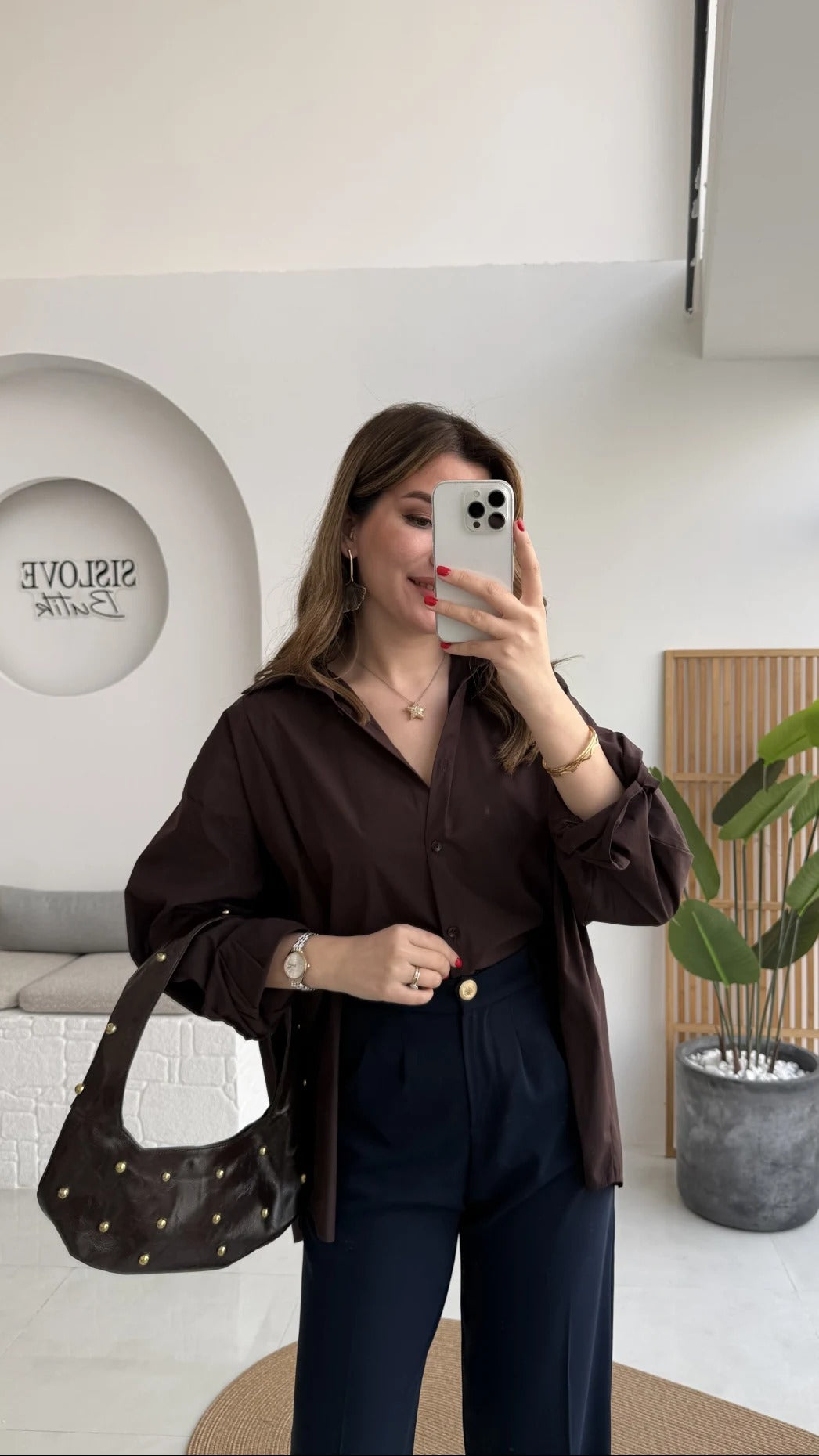 Front Slit Oversize Poplin Coffee Shirt