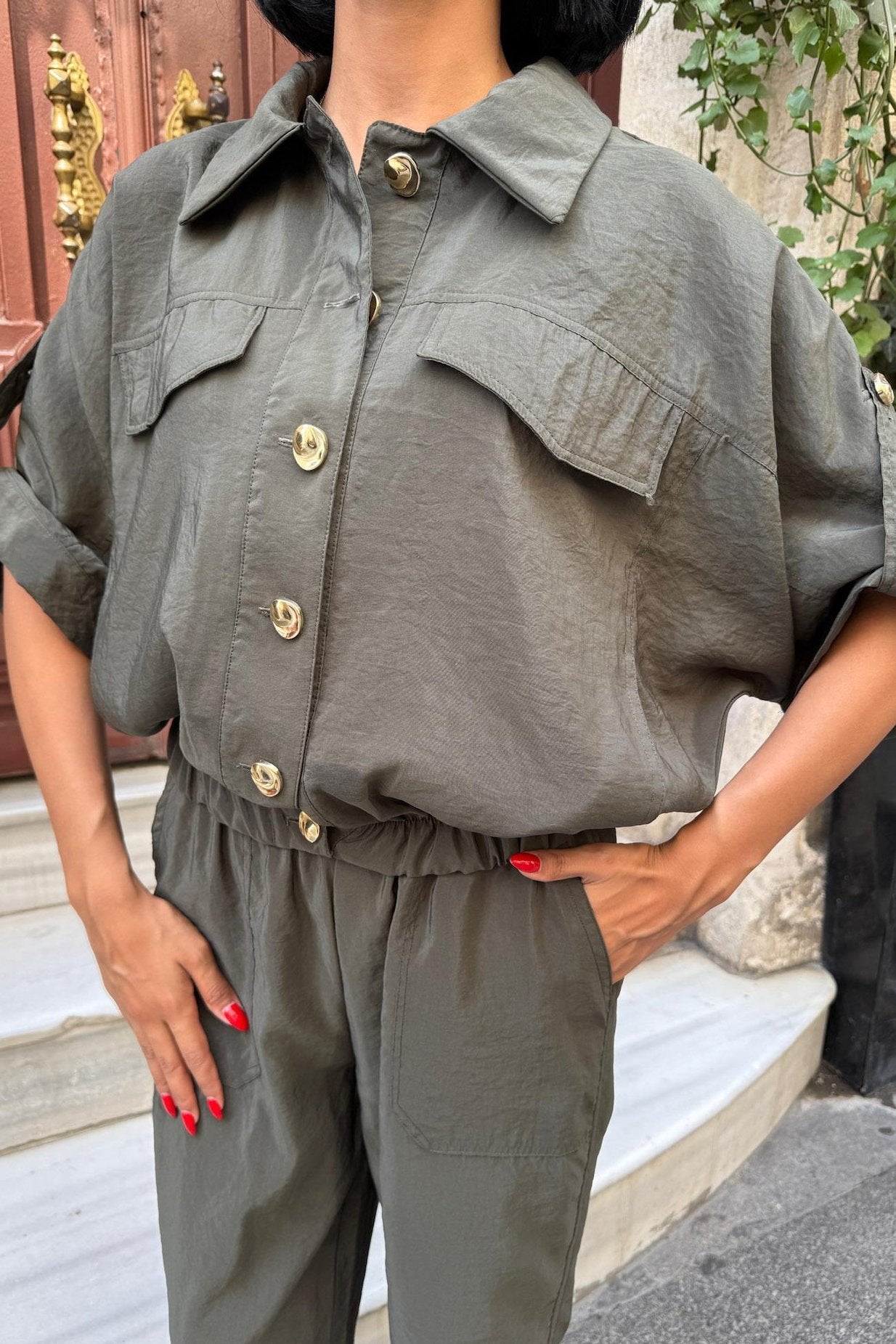 Gold Button Detailed Elastic Comfortable Suit Dark Grey