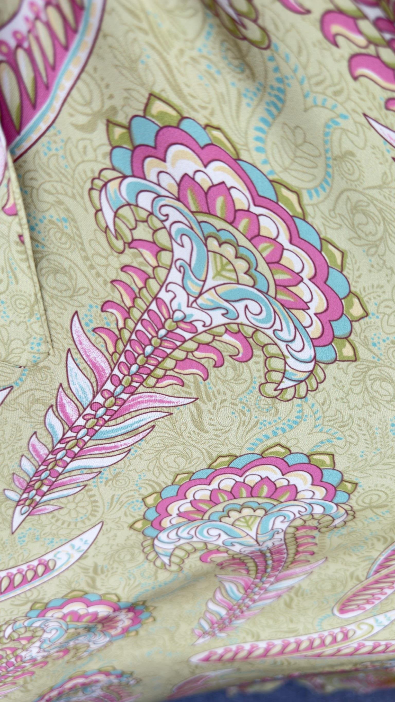Green Ethnic Pattern Satin Premium Dress