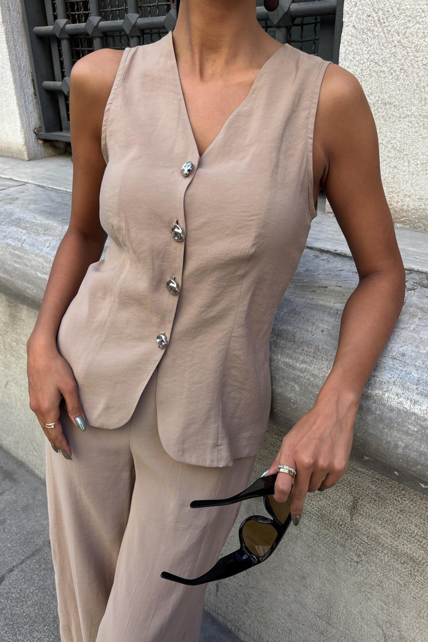 Lace-Up Vest Plazza Trouser Modal Set Beige