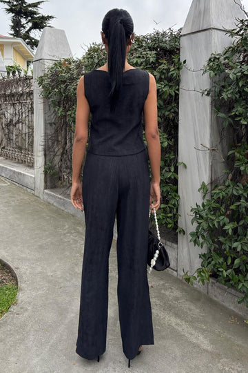 Zero Sleeve Blouse Batik Patterned Trousers Two Piece Set Black